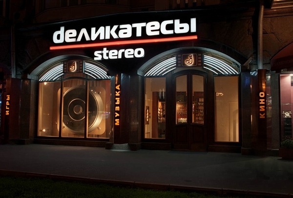 "Деликатесы Стерео" аудио-видео бутик. Оформление фасада и витрин /2004